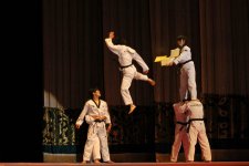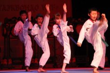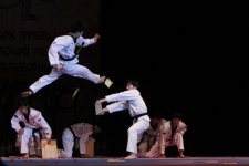 После официальной части мастера из Кореи в составе 30 спортсменов продемонстрировали необыкновенные по своей красоте и сложности номера. Невероятные полеты, меткость и сила ударов, выступление с закрытыми глазами удивили зрителей.