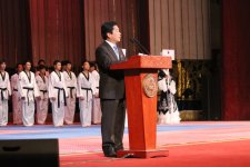 - Хотелось бы отметить особый интерес президента вашей республики к таэквондо, - отметил Чрезвычайный и Полномочный посол республики Южная Корея в КР Ким Чанг Гю. - В 2013 году глава страны Алмазбек Атамбаев посетил Южную Корею с официальным визитом. Помимо рабочих моментов, также была и культурная часть, в которую, конечно же, вошло таэквондо. В заключительный день пребывания в Сеуле президент Кыргызстана посетил Мекку для всех таэквондистов - штаб-квартиру Всемирной федерации таэквондо WTF – «Куккивон». Кыргызстанскому лидеру был официально присвоен почетный 9-й дан по таэквондо, которым всего в мире владеют девять человек.