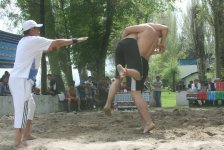 Побороться на песке (а его было завезено несколько тонн) решили не только бишкекские спортсмены, но и гости из Канта. Как рассказал организатор чемпионата Виталий Филипповский, он прошел на высоком уровне, были соблюдены все условия для пляжной борьбы. Радовал спортсменов чистый воздух, реликтовые деревья и теплый песок – одним словом, настроение было праздничное!