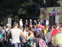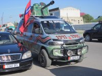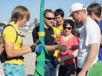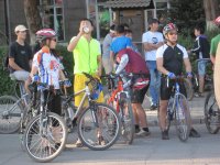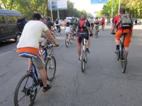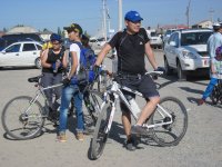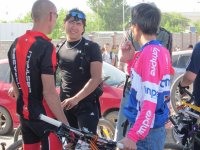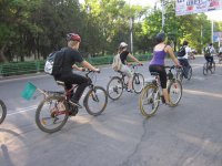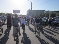 Все желающие поучаствовать в велопробеге получили флажки, георгиевские ленты, и специальные номера, по которым на финише разыгрывали презенты. Как только на старте появились сотрудники ГАИ, и был проведен тщательный инструктаж, колонна двинулась по улице Ахунбаева.