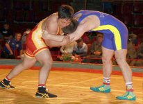 Победителями первого дня соревнований стали: до 57 кг – Надырбек уулу Самат (ЦОП, «Дордой»), до 65 кг – Азат Мирахимов (ЦОП, «Замандаш»), до 74 кг – Рустам Дудаев (Украина), до 97 кг – Нажимудин Кудайбергенов (Казахстан).