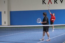 Участникам турнира не терпелось начать поединки. Возможность сыграть на новом покрытии, которого еще никогда не было в нашей стране, в первую очередь была предоставлена членам клуба. Соревнования проходили в парном разряде среди 6 пар.На двух кортах шли захватывающие встречи, а в перерыве мы попросили рассказать участников турнира об игре и о новых кортах.