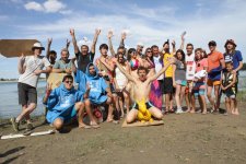 За победу боролись и лешие и водяные, водную гладь продолжали покорять на тазиках, капотах дверях от холодильника, велосипедах прикрученных сноубордам. Реквизиты рассыпались на части, а участники продолжали покорять водную гладь.