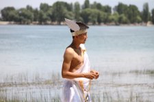 Перед зрителями предстал пират Роман. Все в его плавсредстве и костюме было продумано до мелочей, от попугайчика на плече, до мощного пиратского влага. Скептики уверяли, что такая ванна не проплывет и пару метров, но спортсмен-экстремал был уверен в своих силах. Спустя десять секунд зрители видели его развивающийся флаг уже на середине озера, а его возвращение на берег было встречено бурными аплодисментами. Свою вторую попытку Роман Салабай использовал уже в другом образе. И перед болельщиками предстал рыцарь Рамазан на надувном коне Сары, который был тщательно привязан к обыкновенной доске. И эта конструкция пронесла спортсмена не только до середины озера, но и выдержала на поворотах. Роман держался « на коне» очень уверенно. Своим выступлением участник сразу же затмил предыдущих конкурсантов, но впереди было много достойных соперников.