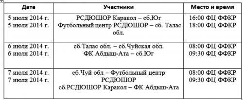 Как сообщает ФФКР, первый тур чемпионата Кыргызстана по женскому футболу 2014 года пройдет с 5 по 7 июля на полях Футбольного центра ФФКР. Второй тур чемпионата пройдет осенью.