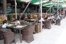 Игры проходили на террасе под шум фонтанов, среди цветов, в дружественной атмосфере. Пришедшие поболеть за своих родителей малыши, также получили возможность сыграть в шахматы на детской площадке, где была установлена гигантская доска с деревянными фигурами. Ребятишки с большой охотой переставляли тяжелые фигуры и играли партии с игроками постарше. О такой спортивной красоте позаботился хозяин паба, большой любитель спорта. Как выяснилось, на данной доске можно играть и в «живые шахматы», когда роль фигур выполняют все желающие. Эта затея очень увлекательна и, быть может, уже в ближайшем времени, мы станем свидетелями подобной партии.