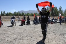 По пути следования (от кинотеатра «Россия» до СТК «Байтик-экстрим») к колонне присоединились другие участники байкерских клубов. А в это время участники техно-праздника уже ожидали колонну для передачи флага Кыргызстана опытным пилотам для старта воздушного шоу, которое окончится прыжками с парашютами.