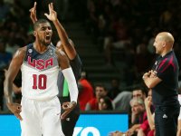 При этом наиболее урожайным способом завершения атак для дуэта служили броски с периметра. Пожалуй, один из немногих шансов сербов в этом поединке крылся в надежде на неудачливость снайперов оппонента. Нередко они насыщали подступы к «краске», лишая американцев возможностей для излюбленных проходов, но тем самым предоставляя возможности для дальних попыток. Кроме того, при борьбе один в один (не только при разменах) балканцы также караулили проходы, находясь от соперника как минимум в метре. В теории, конечно, подобная стратегия могла сработать. Но всё же на это первенство, как уже не раз отмечалось, действующие чемпионы прибыли с достаточным набором снайперов. Очередное подтверждение тому – финальный поединок. Только в первой половине номинальные гости записали в актив 11 трёхочковых, промахнувшись всего четырежды. Конечно, показатель удивительный, но в то же время стоит признать: большинство бросков подопечные Кшишевски совершали без сопротивления, пользуясь численным преимуществом при организации быстрых атак, неравноценным разменом, упомянутой «осторожностью» оппонента или просто безалаберными действиями балканцев в защите, которые также встречались нередко. После антракта дальнобойные орудия стреляли не так метко (за исключением Ирвинга – он реализовал все шесть трёхочковых), однако ещё до окончания третьей четверти фавориты пары разменяли сотню и превратили оставшуюся часть встречи в формальность.