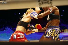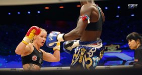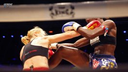 Во втором раунде Валентина пробила жесткий удар с разворота (торакорачаги или ура маваши). Несмотря на то, что француженка закрылась руками, мощный удар Валентины все равно прошел через блок и заметно потряс соперницу.