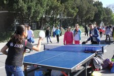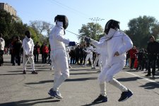 На этот раз особый акцент был сделан на то, чтобы сами бишкекчане попробовали свои силы в различных видах спорта. Особенно гостей праздника заинтересовал турнир по шахматам. К слову, в нем не был задействован ни один спортсмен, так что победителем состязаний стали любители. Также интерес гостей привлекли и показательные выступления шпажистов, за поединками которых бишкекчане наблюдали с восхищением.