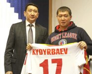 - Сегодня - исторический день для нашего хоккея! - не скрывал эмоций глава Госагентства Кадырбек Эргешов. - Впервые мы провожаем сборную Кыргызстана на Кубок Вызова Азии. Буквально в прошлом году этот турнир проводился в Бишкеке, но, к сожалению, в решающем матче мы уступили команде из Макао. Теперь перед вами стоит единственная задача - занять первое место и перейти в Высший Дивизион. Для вас эта задача вполне выполнима, ведь мы высоко оцениваем уровень кыргызстанского хоккея. Несмотря на большие затраты, которое несет государство по вашему командированию в Кувейт, мы взяли на себя это обязательство, а также провели два этапа учебно-тренировочных сборов. На выезде будет играть сложнее, но вы - настоящая, сплоченная команда! К тому же, нам очень приятно, что в составе сборной играют и хоккеисты из регионов страны!