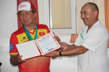 Также Шейшенкул Бакиров за вклад в развитие спорта в Кыргызстана наградил почетными грамотами от Горкомитета по физкультуре, спорту и туризму (Бакиров совсем недавно возглавлял это ведомство) Каная Аламанова и Кубана Атабекова.