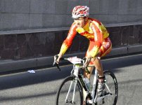 шоссейном велосипеде с отставанием от лидера в 10 секунд. Евгения Булкакова