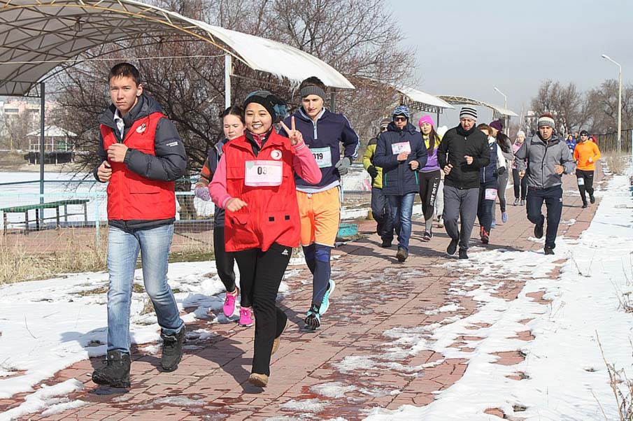 На этот раз участники не состязались, кто прибежит первым, а просто преодолели три километра в свое удовольствие в медленном темпе. Содействие в организации оказали волонтеры Красного Полумесяца, которые, к слову, также вышли на старт. Один круг составлял 650 метров, поэтому стартующим необходимо было преодолеть 5 кругов.