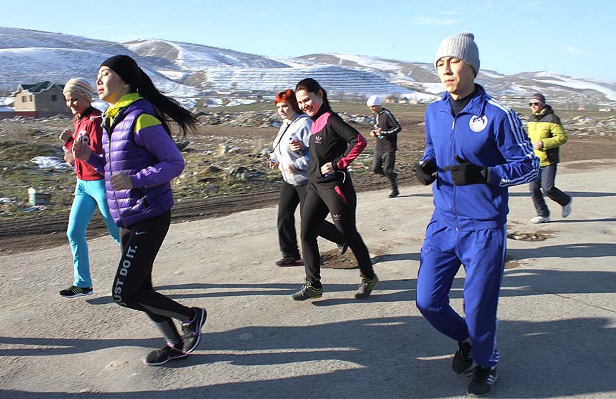 На тренировке присутствовали 25 участников, вместе со всеми побежал и сам Мелис Надыров. Дорога пролегала вверх, и всем участникам рекомендовали бежать, не превышая темпа 8 минут на км, и не отрываясь от группы. Если кто-то сбавлял бег и уставал, то все участники пробега замедляли скорость. По ходу тренировки участники беседовали друг с другом, бежали в свое удовольствие и были одной командой.