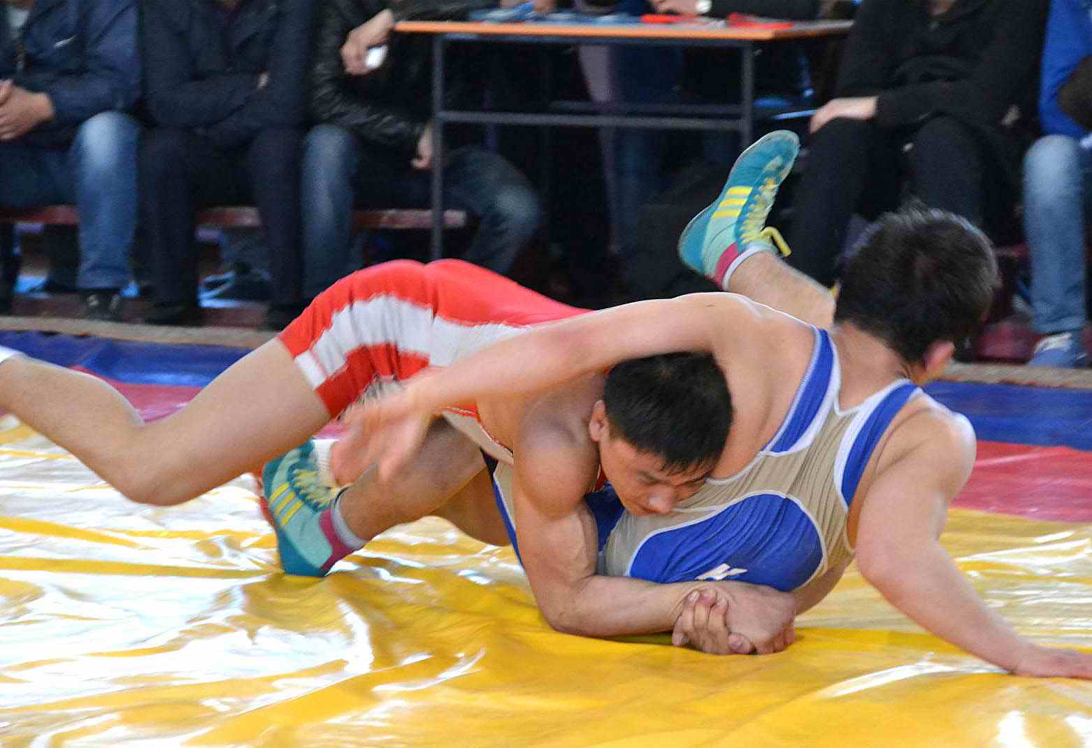 В соревнованиях по вольной борьбе, которые прошли в зале борьбы спортивного комплекса «Манас», приняли участие 202 спортсмена из областей Кыргызстана.