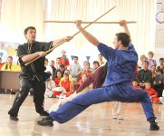 Также участники чемпионата продемонстрировали технику работы с различными видами оружия: шест, меч, сабля, веер, хлыст «хвост тигра», копье и др.. Кроме индивидуальных видов, спортсмены выступали в технике дуйлянь – обусловленных поединках с оружием и без оружия.