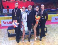 Танцевальная пара из Кыргызстана Артем Семеренко и Валерия Качалко заняли три первых места в самбе, румбе и джайве.