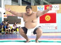 победители чемпионата Кыргызстана по сумо, который прошел накануне в Бишкеке.
