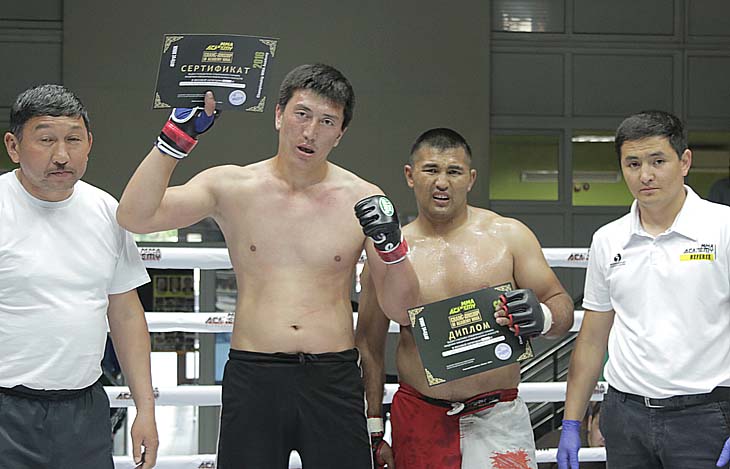 Кроме того, в весовой категории 70 кг болевым приемом на руку победил Аким Беков («Боец»), в весе 77 кг техническим нокаутом выиграл Манас Темирбеков («Спарта», Академия ММА).