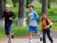 - Сейчас добегут до дома и останутся, - думал я. Во рту пересохло, и я с трудом поддерживал беседу, лишь задавая короткие вопросы. Оказалось, что ребята учатся в 6-ом классе местной школы. Мы добежали до конца села и один из мальчиков попрощавшись, побежал домой. Второй же, не останавливаясь, на ходу снял школьный пиджак, сложил его и уложил в рюкзак, молния которого не закрывалась до конца. Поправив рюкзак на плечах, малец указал на бегущих впереди участников марафона и стал уговаривать перегнать то одного, то второго. Таким образом, я обогнал своего преподавателя Медета Тулегенова, который с самого начала ушел далеко вперед. Для меня это большое достижение!