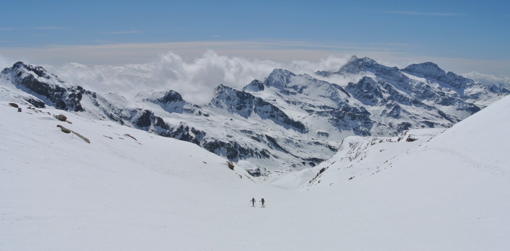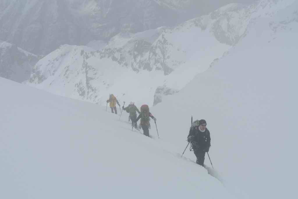 - На лыжах есть специальные крепления, которые позволяют подниматься на лыжах в гору, а вовремя спуска фиксируют ботинок, также как и обычные горнолыжные крепления. Так же нужны камуса – это такие синтетические шкуры на клеевой основе, которые крепятся на скользящую поверхность лыж и не дают лыжам проскальзывать назад на подъемах в гору. Есть и лыжные кошки, которые используются на очень твердом снежном фирне. Необходимы и специальные лыжные ботинки, где верхняя часть ботинка двигается на 60 градусов, позволяя комфортно подниматься в них, а на спуске они превращаются в прекрасные горнолыжные ботинки. Восхождения на лыжах можно совершать хоть когда, можно найти вершины и зимой и летом и в разных уголках нашей страны. Главное это иметь свободное для этого время, физическую подготовку и небольшой опыт горовосхождений.