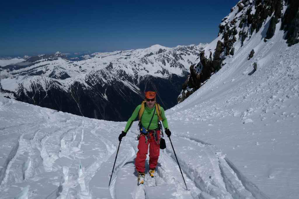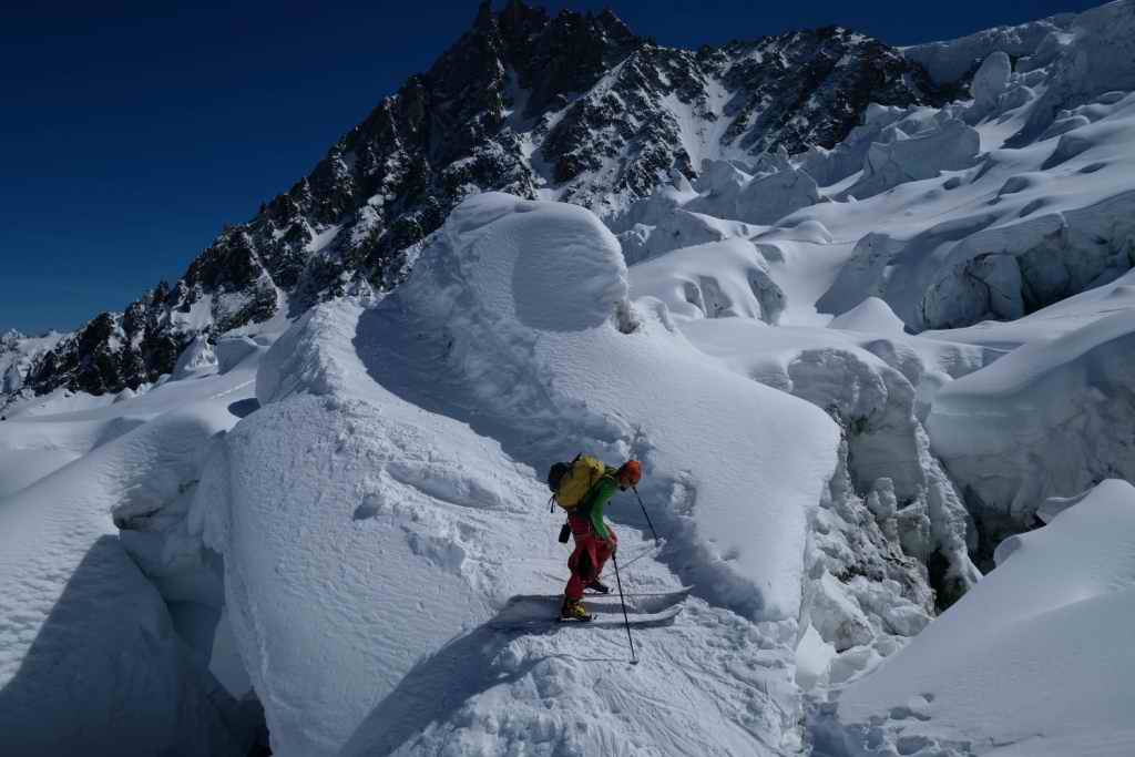 - Накануне коллеги из компании «La Sportiva» пригласили принять участие в небольшой экспедиции и побывать на трех вершинах: Монте-Роза (Италия, 4609 метров), Гран Парадизо (Высшая точка Италии, 4061 метр) и Монблан (граница с Францией, высшая точка Западной Европы, 4810 метров). Эти вершины именитые и очень известные не только в Европе. Восхождения и спуски были просто захватывающими. Все три пика, с которых я спускался на лыжах, находятся в одной горной системе Альпах, но каждая уникальна по-своему. Где-то есть большие ледники и трещины, где-то завораживает панорама или рельеф, все они отличаются в техническом плане. Мне очень запомнился спуск с Монблан с большим перепадом высоты в 3800 метров. Склон начинается прямо от маленького, но всемирно известного городка Шамони. За неделю до восхождения на склоны этой горы выпало более 3,5 метра снега, и возникла большая лавинная опасность. Мы стали первой группой, которые прошли этот маршрут после таких обильных осадков. В горах Европы очень развита инфраструктура горных хижин и более того, многие деревни находятся у подножья, куда можно приехать на машине. Экстремалы выжидают определенных погодных условий и отправляются на свои восхождения с лыжами. В Европе это направление невероятно развито и популярно и этим занимается множество людей. Маленькая французская деревушка Шамони, родина горных экстремальных лыж и лыжники со всего мира собираются здесь в мае и поджидают определенное состояние снега. Как только снег становится с их точки зрения стабильным и закрепляется на крутых уклонах до 60 градусов, они начинают свои головокружительные, а глазами обывателей сумасшедшие спуски с огромных вершин. Одним словом, горы в Европе очень сильно освоены и инфраструктура очень развита.