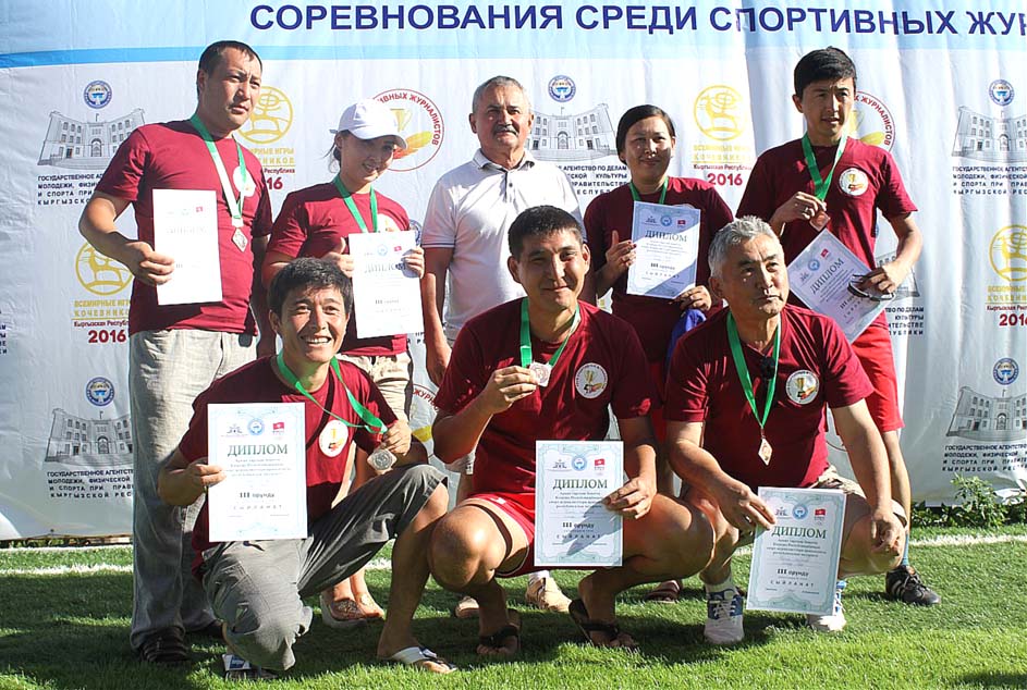 Программа Спартакиады в 2016 году была изменена, и теперь вместо настольного тенниса журналисты стартовали в плавании. Среди мужчин старше 35 лет победил Канай Аламанов, второе место занял Сурат Жылкычиев, а третье - Кабыл Макешов.