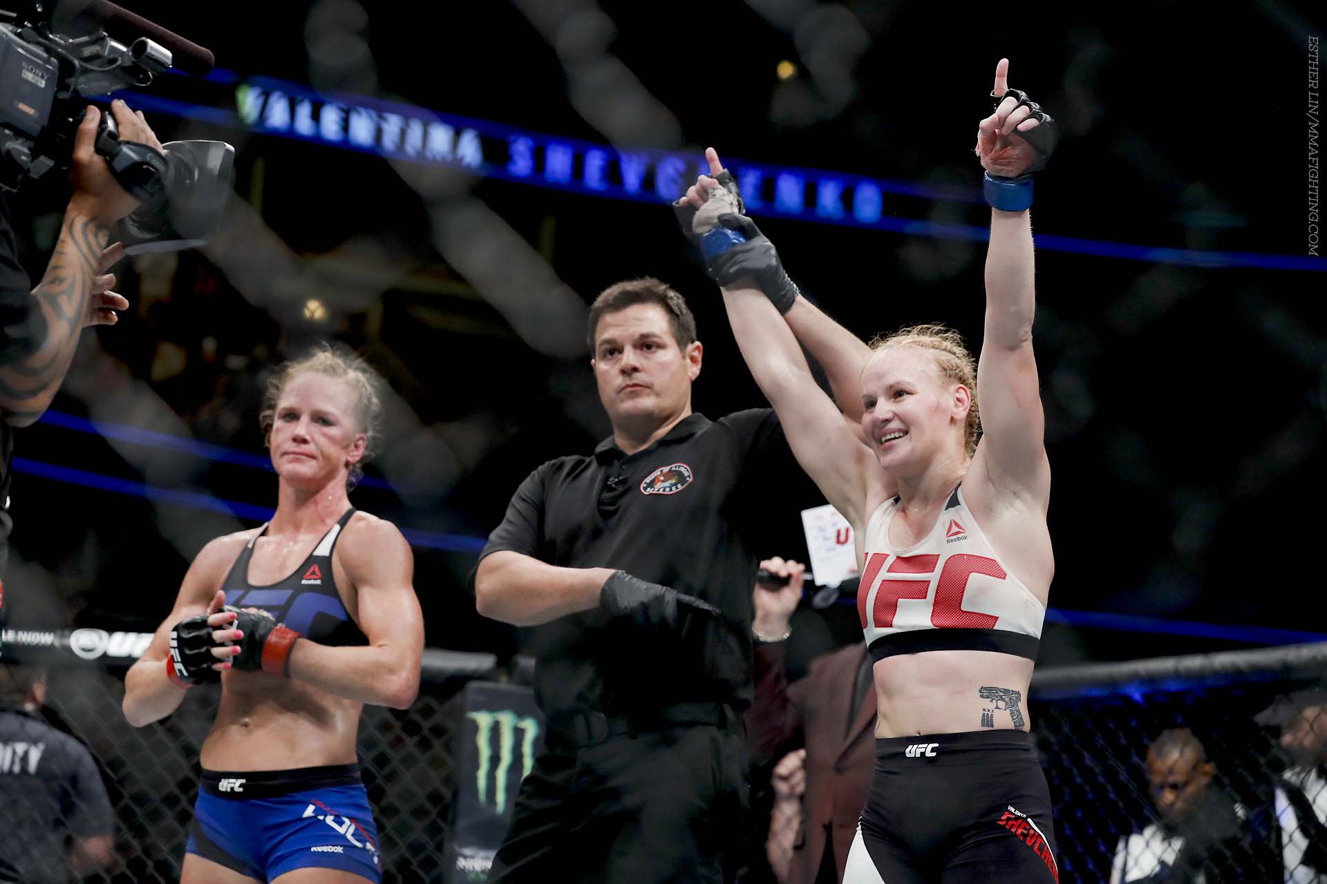 Легчайший вес (до 61 кг): Валентина Шевченко победила Холли Холм единогласным решением судей (49-46 трижды).