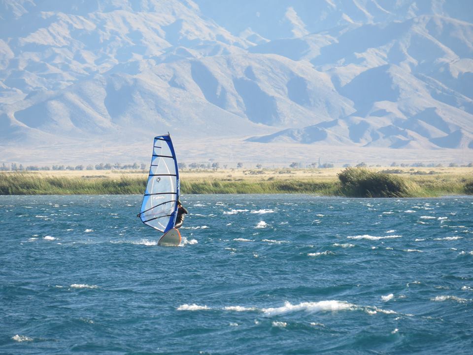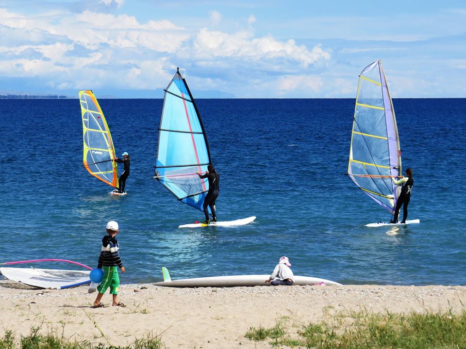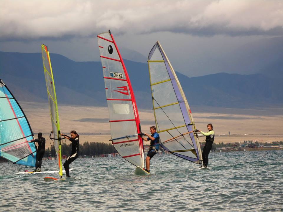 Виндсерфинг в Кыргызстане это группа любителей по возрасту старшим являюсь я, но спортсмены считают меня почти ровесником. Ассоциация данного вида спорта существует формально, когда-то я тоже состоял в ней, но затем ушел. Ныне выиндсерфинг находится в Федерации парусного спорта КР. К сожалению, в Кыргызстане виндсерфинг не является видом спорта, хотя он олимпийский и в России появилось множество видов и классов. С 2017 года проводится «Свободный класс». Таким образом, в данной категории может принимать участие спортсмен любого возраста на любом типе доски. Соревнования являются рейтинговыми, в соседней Туркмении проводился Этап Кубка мира. Было бы неплохо, если бы государство обратило на нас внимание. В реестре Государственного агентства по спорту нас нет. Мы не просим денег, мы просто хотим, чтобы поддержали некоторые наши инициативы. Накануне мы нашли очень хорошее место для организации спота для кайта и виндсерфинга. Там постоянно дует «безопасный ветер» под углом к берегу и имеется небольшой «меляк», так что вода теплее.