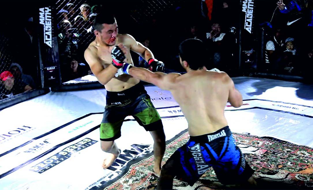 Далее состоялись основные бои. В первом поединке в весе до 57 кг выступил Абдурасуд Кенжеев (Академия ММА Иссык-Кульской области) и гость из Казахстана Абокир Ободов. Удушающим приемом во втором раунде победу одержал Кенжеев.