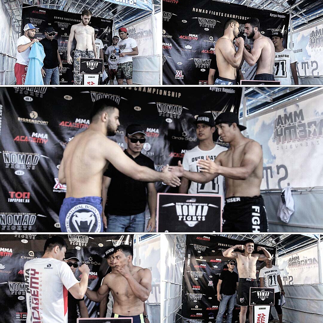 В финале вечера на улице пошел проливной дождь, и продолжать бои из-за скользкого покрытия было практически невозможно. Восьмиугольник закрывала крыша, но все-таки биться было сложно, так как дождь лил на арену. Организаторы постелили ковер, и бойцы дрались в стойке до конца, показав невероятно зрелищный бой. Ждем результатов из Джалал-Абада!