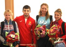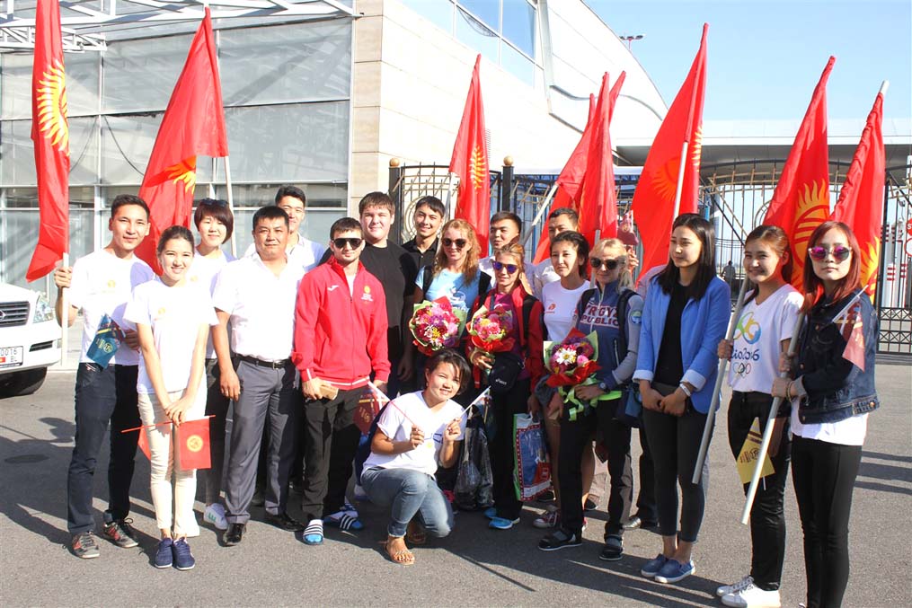 Первым делом прилетевшие атлеты отведали боорсоков и приняли цветы от встречающих, которые, в свою очередь, не переставали их благодарить. В первых рядах ребят приветствовал заместитель Госагентства Руслан Джуманазаров.