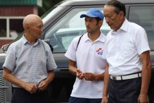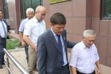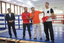 На церемонии открытия боксерского зала от чемпиона красную ленточку перерезали создатели зала Клим Тё и Орзубек Назаров, а также директор Госагенства Канат Аманкулов.