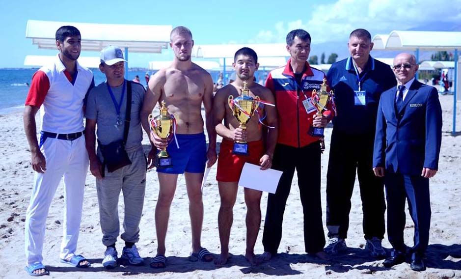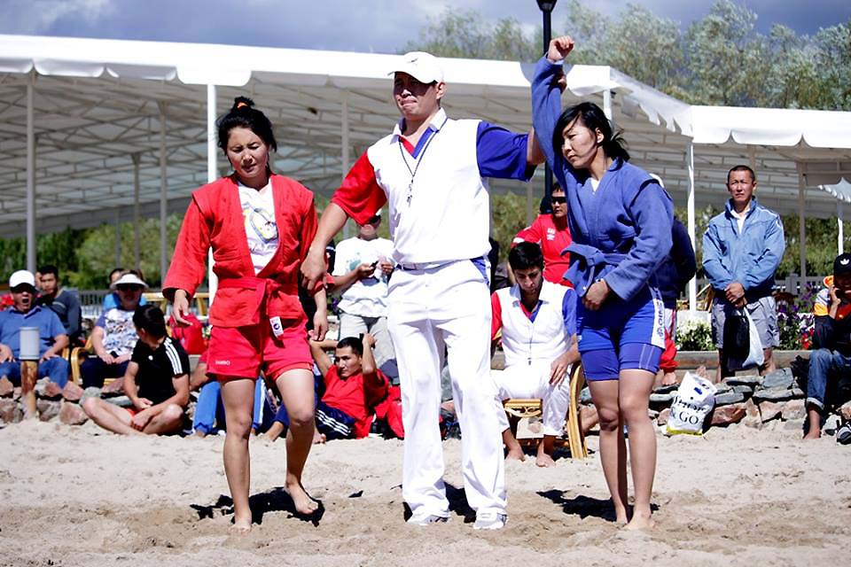По словам главного судьи соревнований Александра Ларионова, в турнире по пляжному самбо приняли участие около 25 спортсменов из регионов Кыргызстана. Фото предоставлены пресс-службой Госагентства.