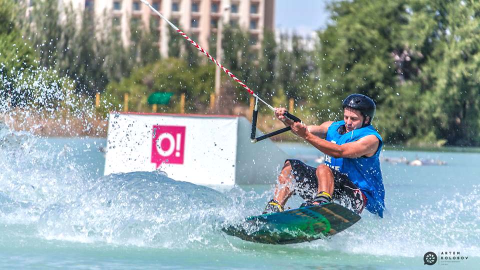 - Этот невероятно зрелищный вид спорта в нашей стране начал свое активное развитие в 2013 году. До этого времени бишкекчане катались в свое удовольствие на Ала-Арчинском водохранилище, цепляясь за трос катера, и даже использовали сноуборд в качестве спортивного снаряда и обычный джип в качестве тяги. И все это происходило на БЧК. Но как только был построен единственный вейк-парк с лебедкой, он дал толчок к развитию кабельного вейкбординга в Кыргызстане. Новый вид спорта осваивали мои несколько знакомых и известный экстремал Евгений Патлай. Именно он и предложил мне попробовать прокатиться на водной доске. До того момента я и знать не знал о существовании такого вида спорта. Признаюсь честно, в вейкбординг я влюбился с первого же выхода на воду, и с тех пор моя жизнь изменилась. Я буквально заболел спортом. До этого времени я был обычным веб-разработчиком, и все мое время занимала работа. Зимой катался на сноуборде, но выезжал всего несколько раз за сезон, так что назвать это серьезными тренировками вряд ли возможно.