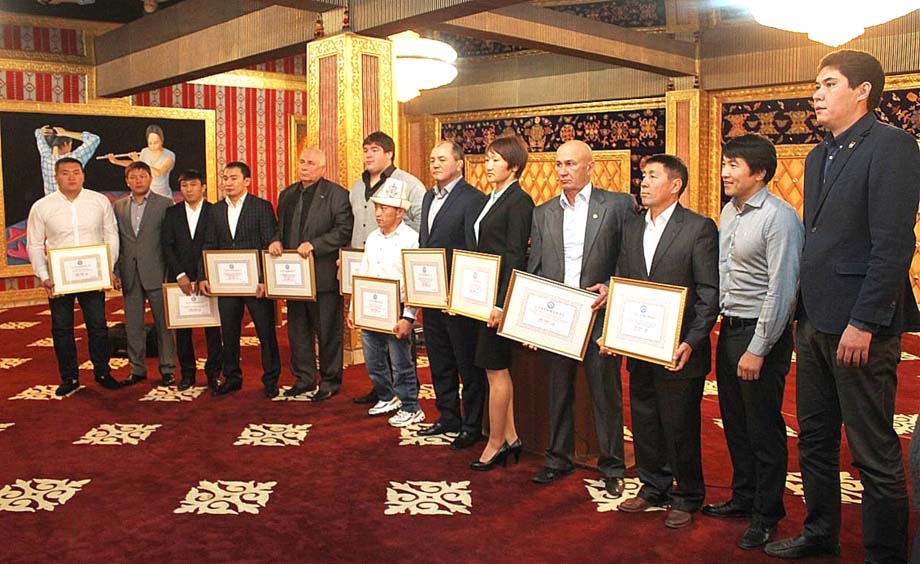 Сертификаты в зале торжеств Дворца спорта им. Кожомкула вручал глава Государственного агентства по делам молодежи, физической культуры и спорта КР Канат Аманкулов, а также представители Национального олимпийского комитета и Центра Олимпийской подготовки.