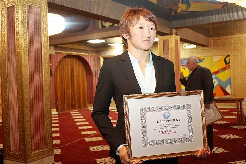 За занятое пятое место 1 миллион сомов получили: борец греко-римского стиля Арсен Эралиев, Айсулу Тыныбекова (женская борьба) и участник паралимпийских игр Эсен Калиев (пауэрлифтинг).