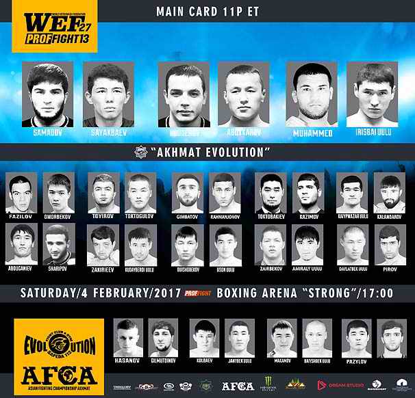 В весовой категории 61 кг Алимардан Абдыкаров (Кыргызстан) будет биться против Бахтияра Худоерова (Таджикистан БК «Ахмат»). В весовой категории 71 кг Ринат Саякбаев (Кыргызстан) выступит против Саидо Самадова (Таджикистан БК «Ахмат»).