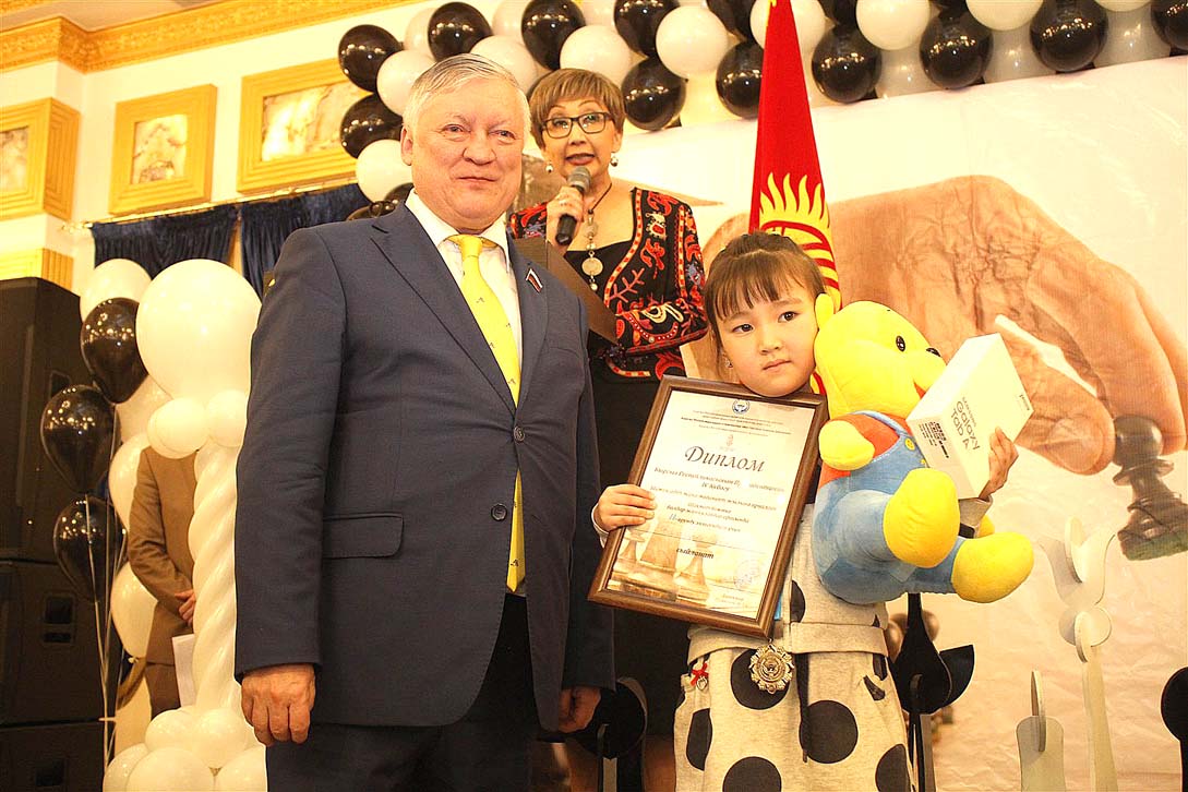 Еще ни одна церемония награждения состязаний по шахматам в столице не была столь торжественной. Ценные призы в виде планшетов и игрушек детям вручали вице-премьер министр Эльвира Сариева, глава Госагентства по делам молодежи и спорту Канат Аманкулов, депутат Жогорку Кенеша Дастан Бекешев, глава РДИТА «Алтын туйун» Жаркын Бапанова. Также медали вручали представители Горкенеша и другие высокие гости.