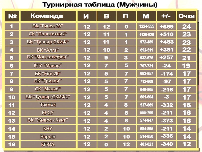 - Завершившийся 13-й тур мужского чемпионата, лишь еще больше закрутил интригу. Борьба за выход в плей-офф становится еще интересней! - отмечает basketball.kg.