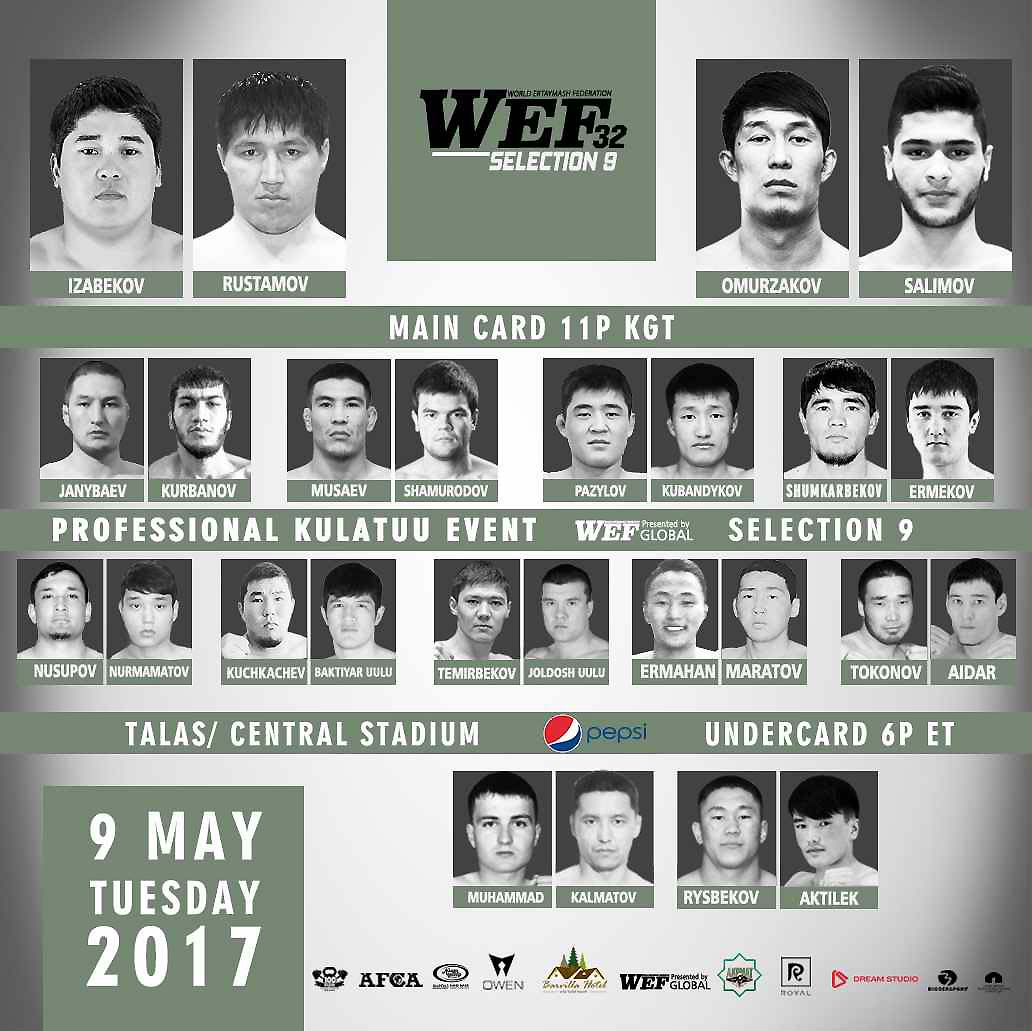 Как отмечается, в этот день пройдет 32-й международный турнир среди профессионалов WEF 32 SELECTION-9 - BATTLE in TALAS, в рамках которого состоятся поединки сильнейших бойцов Кыргызстана, Казахстана и Узбекистана.