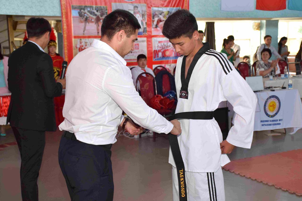 В завершение спортивного мероприятия перед участниками и зрителями выступил директор Академии таэквондо, обладатель черного пояса Сардар Бектурович Майтукин, ветеран таэквондо, который, в свою очередь, пожелал спортсменам прилежно тренироваться, закалять тело и дух, ставить высокие спортивные цели, успешно отстаивать на различных турнирах честь Кыргызстана.