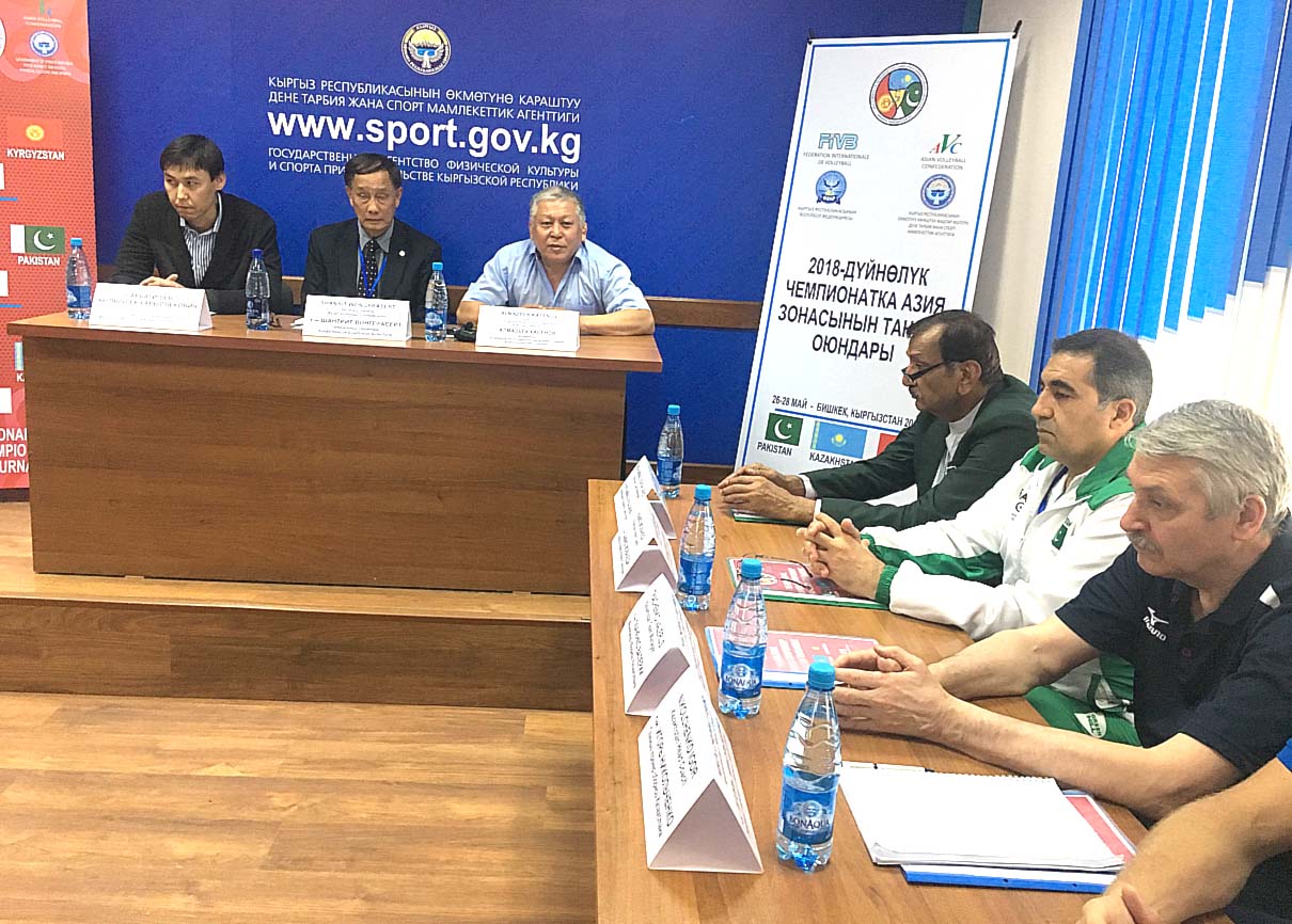 На встрече с журналистами присутствовали генеральный секретарь Конфедерации азиатского волейбола Шанштрит Вонгпрасерт, глава Дирекции по Олимпийским видам спорта Алмазбек Касенов, менеджер сборной Пакистана Мухаммад Букш Джавед, главный тренер сборной Пакистана Хамид Мовахеди, менеджер сборной Казахстана Валерий Ткаченко, а также главный тренер сборной Казахстана Игорь Никольченко. Также в конференции принял участие главный тренер сборной Кыргызстана Андрей Анкудинов и судьи, которые будут обслуживать игры. Также в этот день состоялся технический митинг.