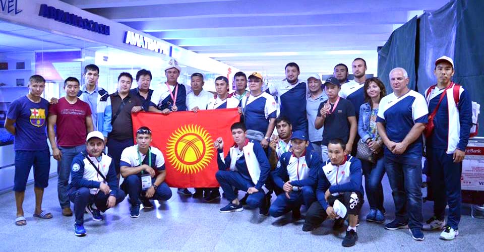 В аэропорту «Манас» родные и близкие спортсменов встретили их с почестями. Напомним, что на этих Играх спортсмены из Кыргызстана завоевали несколько бронзовых наград: