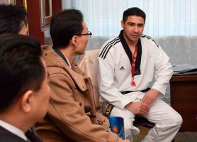 - Целью их приезда в Кыргызстан являлись вопросы экономического сотрудничества, инвестиционные проекты, - рассказывает президент Академии таэквондо WTF КР Убайдула Тохтурбаев. Их также интересовало развитие культурных и спортивных связей между нашими странами. Как оказалось, они были осведомлены о том, что в Кыргызстане культивируется такой национальный корейский вид единоборств, как таэквондо, признанный олимпийским видом спорта. Поэтому они с нетерпением ожидали поездки в Академию таэквондо, чтобы своими глазами увидеть, насколько успешно осваивают этот сложнейший вид спорта наши дети и молодежь.