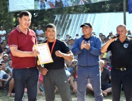За первые места борцы получили племенных скакунов, за «серебро» - 30 тысяч сомов, за «бронзу» - 20 тысяч сомов. Победители и призеры были награждены медалями, дипломами и ценными призами Управления по делам молодежи, физической культуры и спорта Жалал-Абадской области.