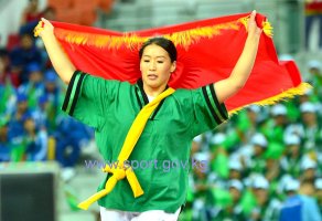 которая вернулась сегодня в Бишкек с Азиатских Игр в закрытых помещениях и по