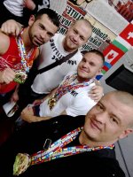 Руслан Сахбетов - первое место в троеборье, второе место - жим, первое место - становая тяга, второе место - народный жим. Также Руслан выполнил норматив МСМК и Элита России в народном жиме.