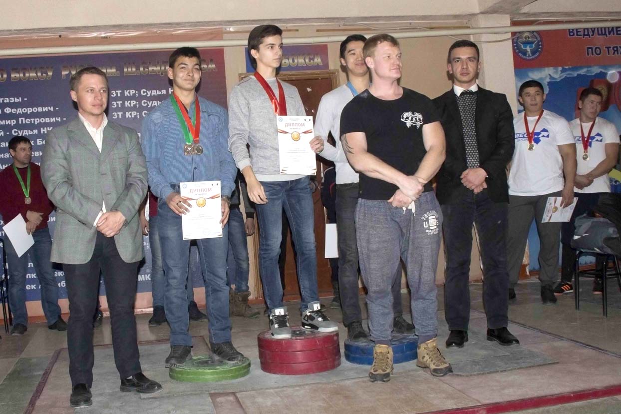 Среди ветеранов чемпионом Кыргызстана в весовой категории до 93 кг стал 56-летний Валерий Метельников, а 56-летний Президент Федерации пауэрлифтинга КР Бакыт Керимбеков соревновался с молодыми спортсменами в весовой категории до 105 кг и с результатом 565 кг(205+150+210) завоевал бронзовую медаль.